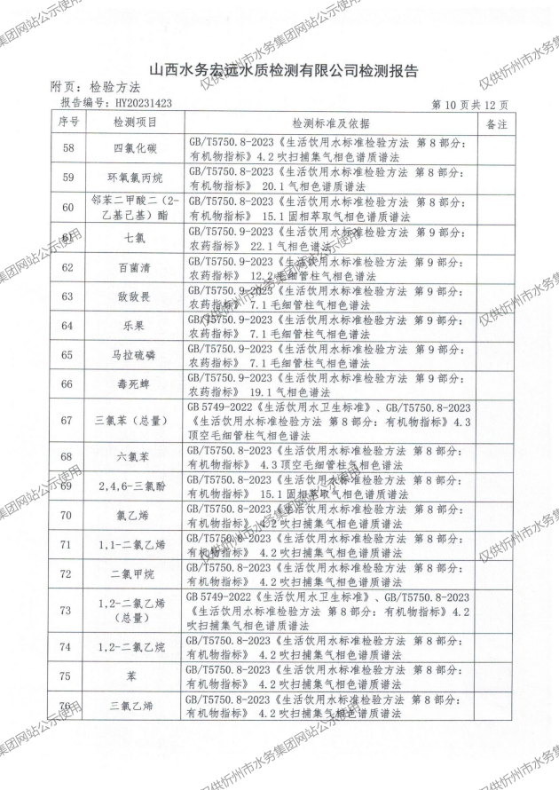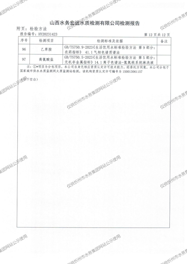 2024年忻州城區(qū)公共供水南水廠、三水廠、云中水廠出廠水97項(xiàng)水質(zhì)全分析