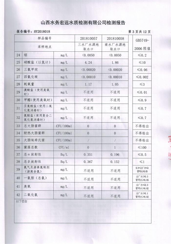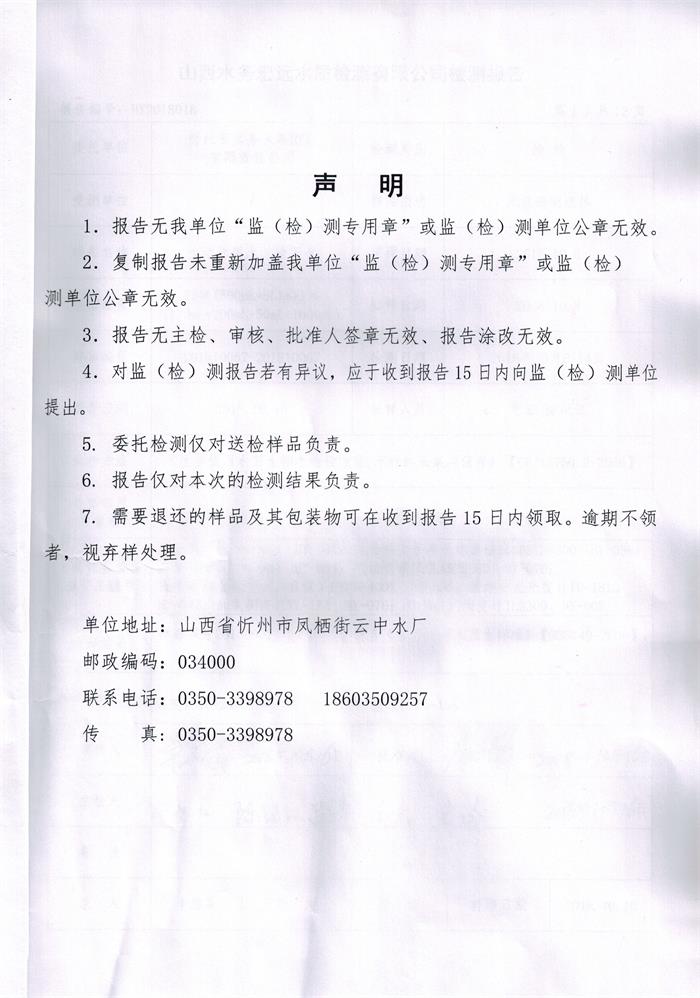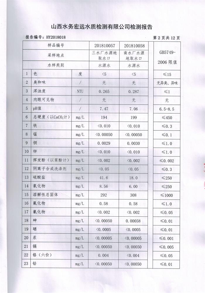 忻州城區(qū)公共供水水源水、出廠水、管網(wǎng)水、管網(wǎng)末梢水2018年10月份水質信息公示